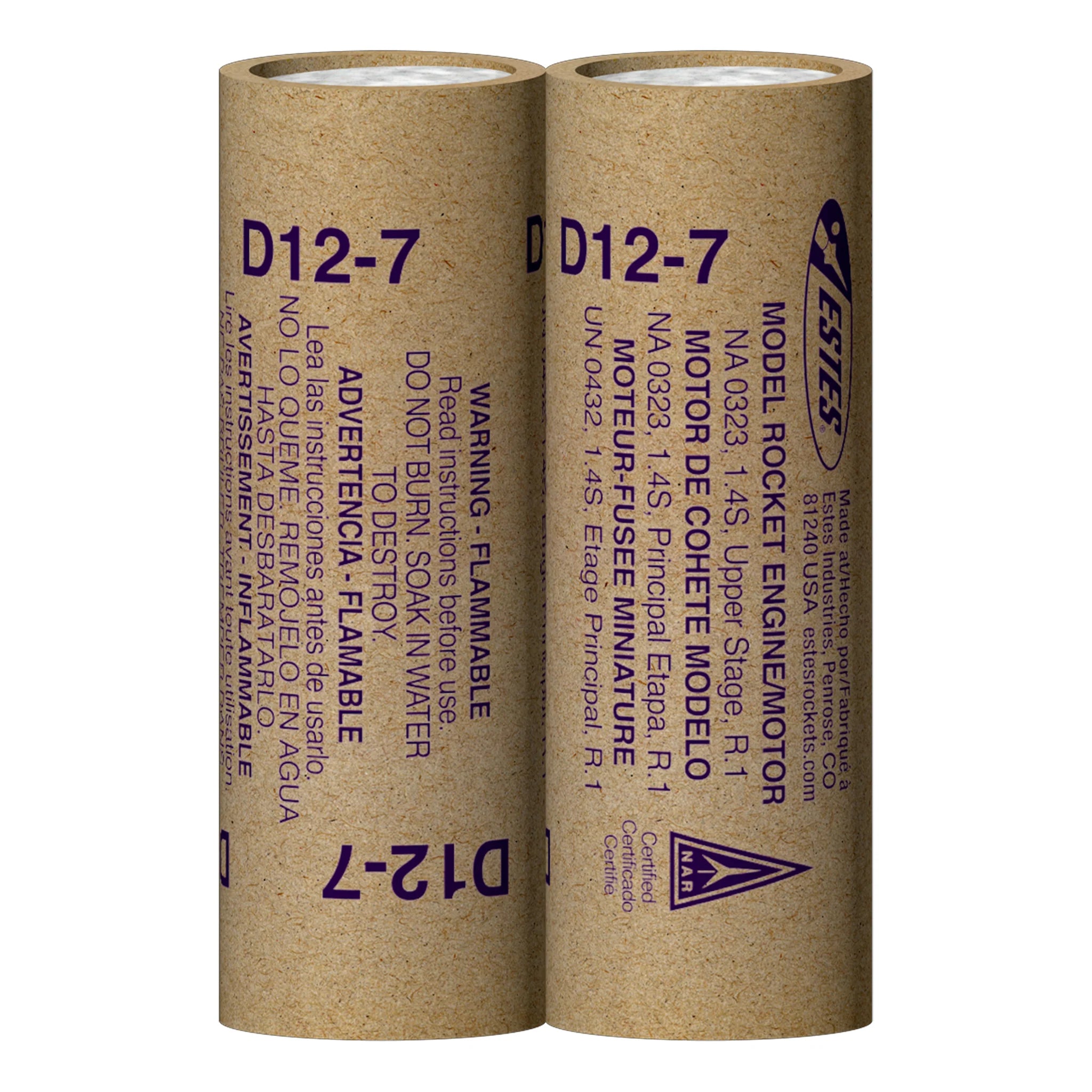 The Estes D12-7 model rocket engine is a powerful 24mm diameter motor designed to elevate your rocketry experience. Ideal for single-stage rockets weighing less than 8 ounces (226 grams), this engine delivers impressive thrust and altitude capabilities. Each pack includes two engines, two starters, and four starter plugs, providing everything you need for multiple exhilarating launches.