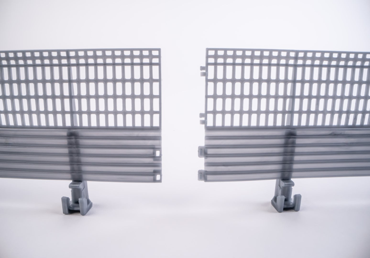 The AFX Catch Fence is sturdy enough to withstand massive crashes and flexible enough to avoid damaging your car. Its intricate design is strong yet bendable. Shape it to any curve in your track layout for secure, reliable connections. Small, discreet notches hook the sections of the fence together seamlessly, detaching with ease.