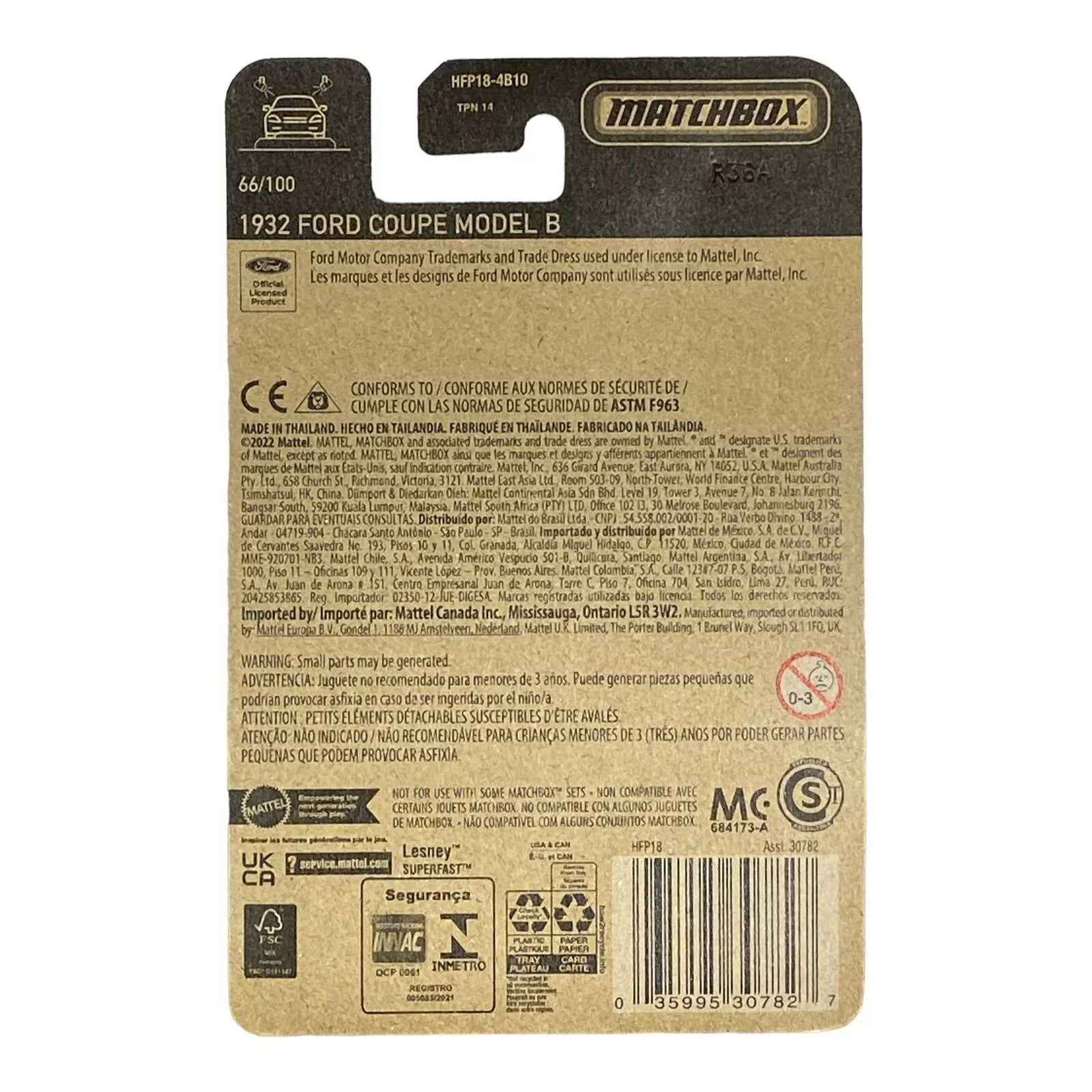 Constructed with high-quality materials, the Matchbox 1932 Ford Coupe Model B boasts several standout features: