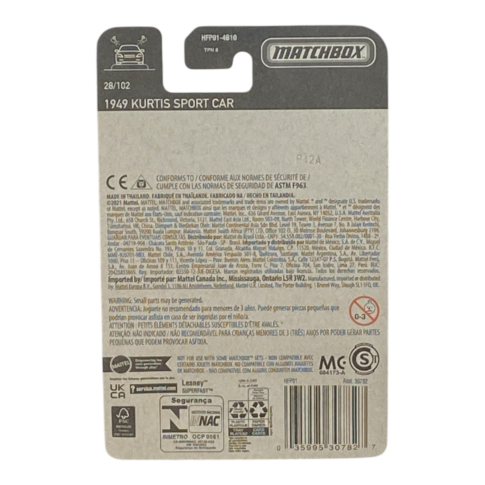 This model represents the legacy of the Kurtis brand and the excitement of the post-war racing era. Its nostalgic design is bound to evoke memories of classic car rallies and vintage racing events. With its historical significance and breathtaking design, the Matchbox 1949 Kurtis Sport Car stands out in any collection.