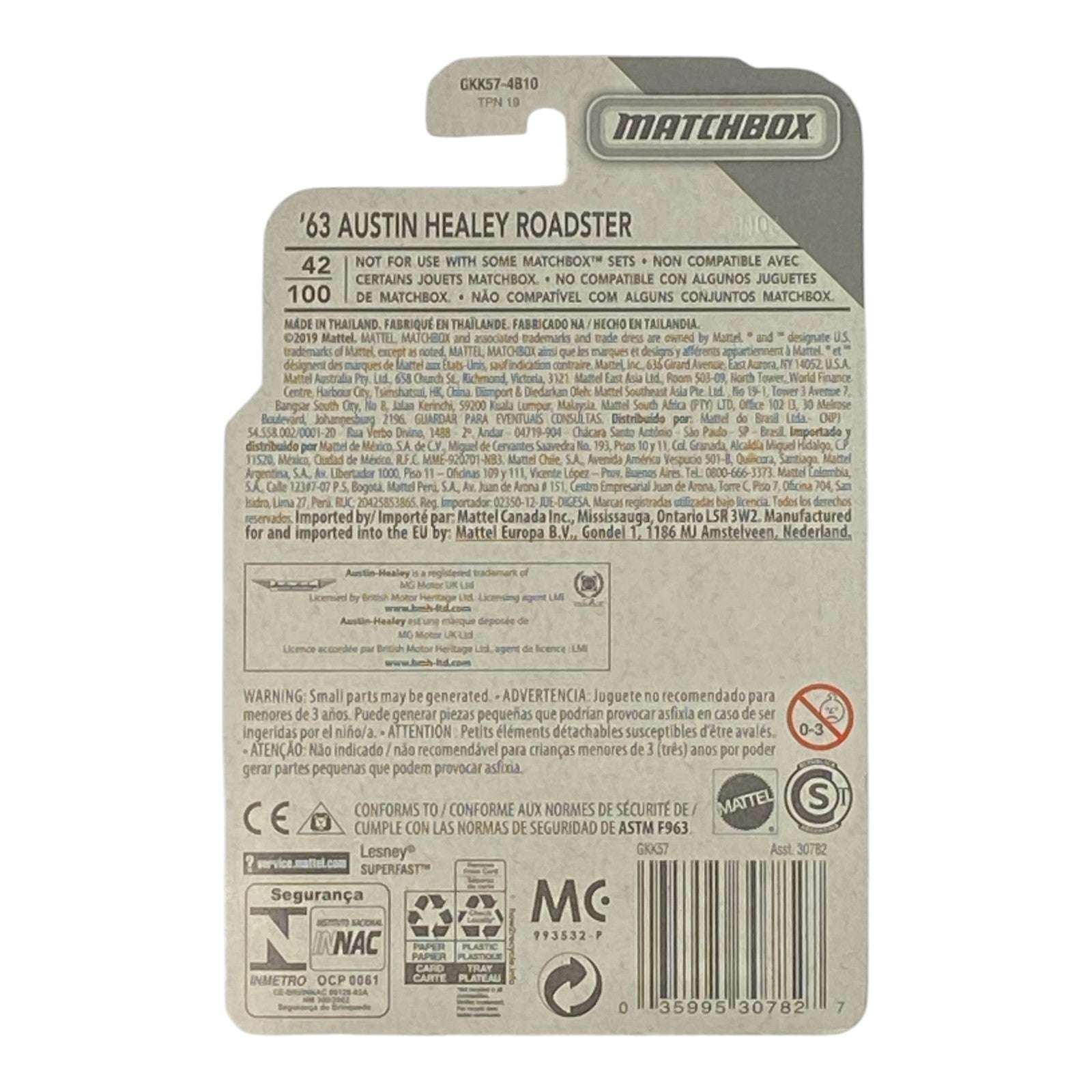 Whether displayed on a shelf or raced on a track, the Matchbox '63 Austin Healey Roadster is designed to please. The vibrant colors and fine craftsmanship make this a standout item in the Matchbox collection. Car enthusiasts will appreciate the authenticity and precision that has gone into this model.