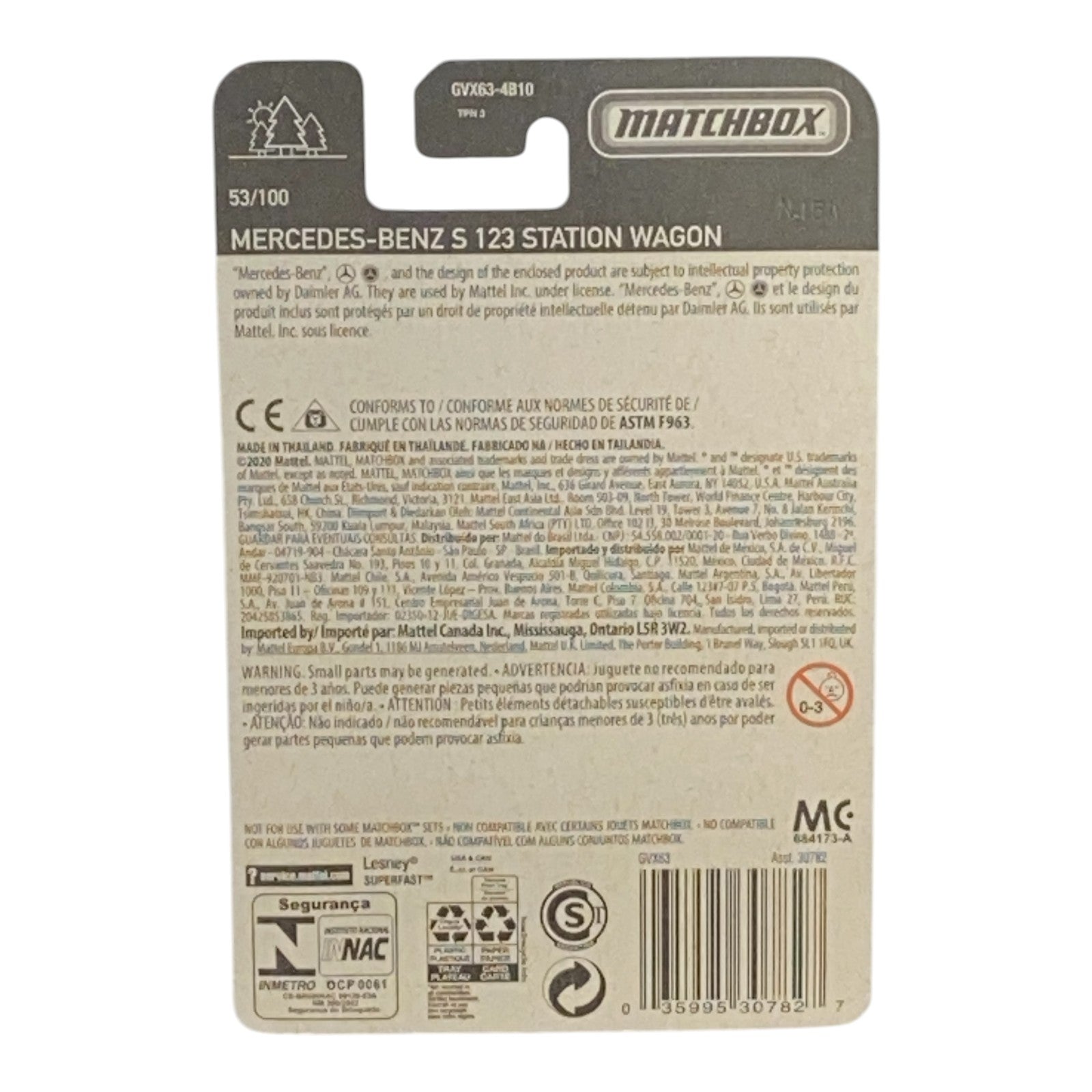 The Matchbox Mercedes-Benz S123 Station Wagon showcases striking lines and a classic silhouette that fans will appreciate. Its well-defined body shape and authentic color palette make it a standout piece. Further emphasizing its appeal are the rolling wheels, designed for both play and display, ensuring that this model is as fun to roll around as it is to show off on a shelf.