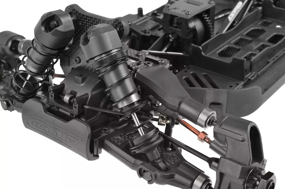 Suspension Arms: Aerodynamic upper arms with integrated carbon stiffeners, dual shock mounting positions, and set screws for fine-tuning make the suspension incredibly responsive and customizable.