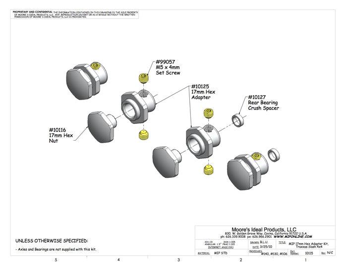 MIP 10115 17mm Hex Adapter Kit Traxxas Slash 4x4