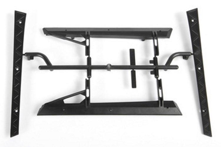 The 2017 CRC Edition SCX10 II Jeep Wrangler comes with a full set of Casey Currie’s CRC gear, including these JK Rock Sliders. There are two parts to each slider - the rail and the step – both molded in high quality plastic to resemble the official part. Additional body mounting points and slots are incorporated to help keep the body from flaring out during your adventure.