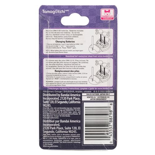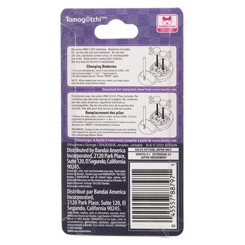 Raise your demon slayer and master different breath styles with the Giyutchi Demon Slayer Tamagotchi from the Hashira Gathering Version. Based on your training methods, you can raise your character into one of nine different Breath users. There are 3 training options to raise the strongest Breath User - Physical Training, Boulder Lifting, and Total Concentration. Japanese programming with a blue design. Feed your slayer either rice bowl or green tea and play three different games. If you neglect training, your Slayer will become injured. If you do not treat the injury yourself, Kakushi will come. Ages 6 and up. Includes 2x "LR44" batteries.