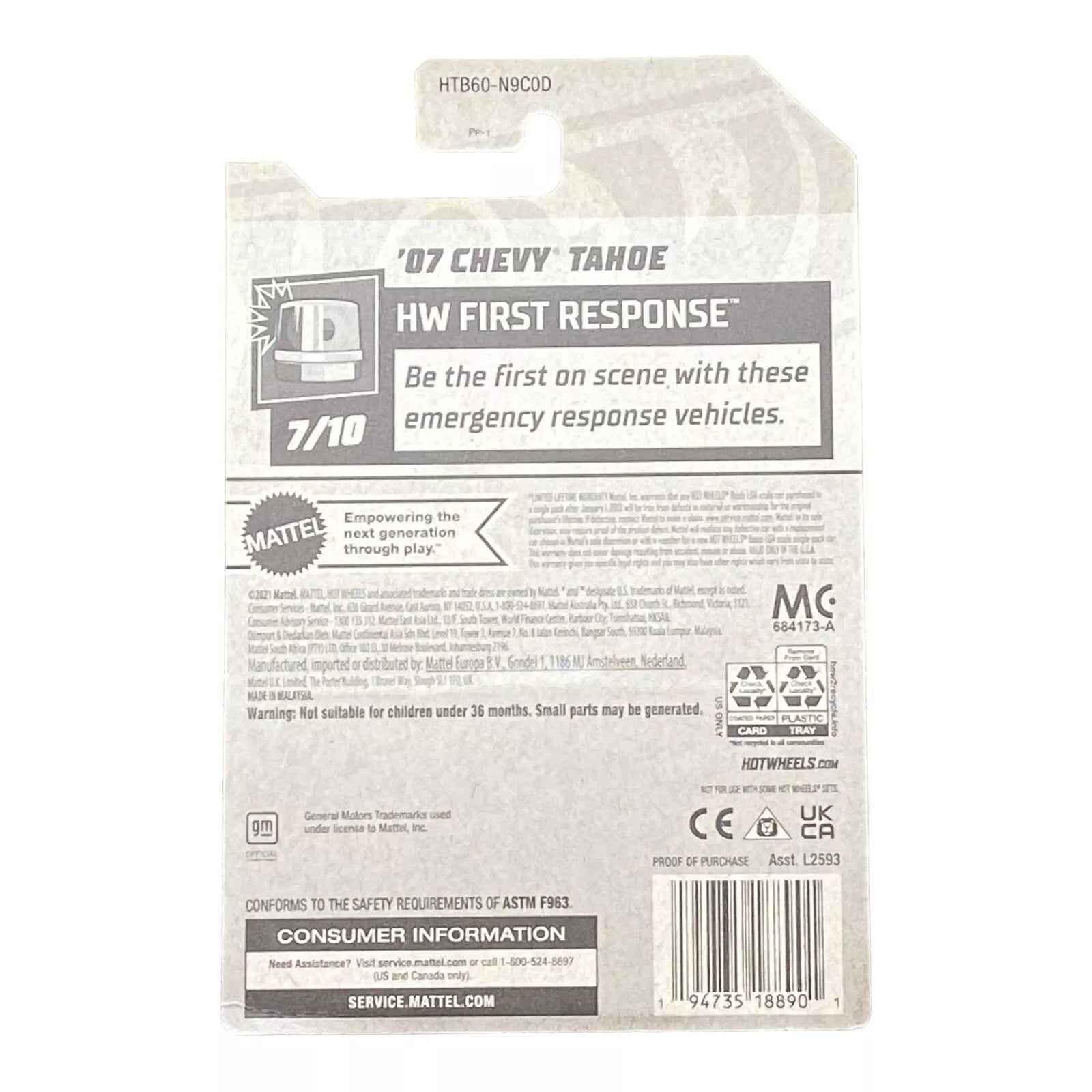 The Hot Wheels '07 Chevy Tahoe is a stunning addition to any die-cast car collection. This meticulously designed model captures the essence of the real-life Chevy Tahoe, showcasing its sleek curves and impressive build. As part of the First Response Series, this model represents emergency response vehicles, making it unique and compelling for collectors and enthusiasts alike.