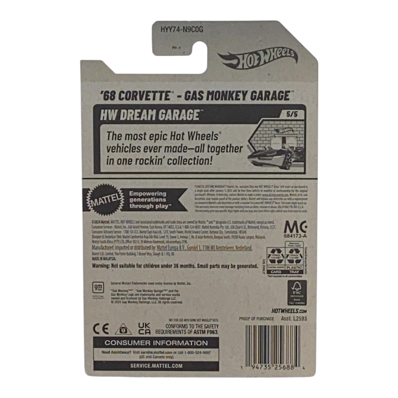 In conclusion, the Hot Wheels '68 Corvette - Gas Monkey Garage brings together nostalgia, craftsmanship, and the thrill of the classic car world, making it an ideal purchase for collectors and fans of hot rod culture. Don’t miss your chance to own this extraordinary model and add it to your collection today!