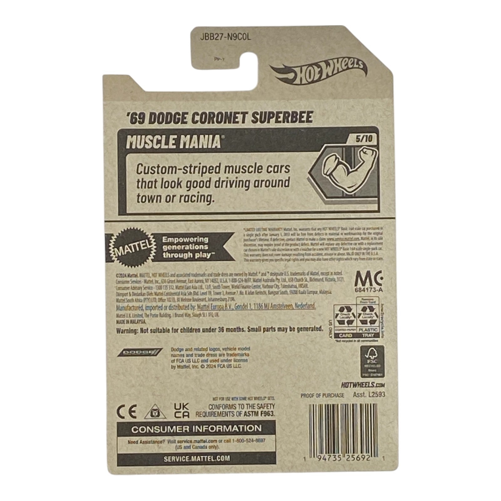With its sleek lines, bold colors, and sturdy construction, the Hot Wheels '69 Dodge Coronet Superbee embodies both style and performance. This model is part of the Muscle Mania Series, numbered 5 out of 10, making it a vital addition to the series and your collection. Here are some standout features: