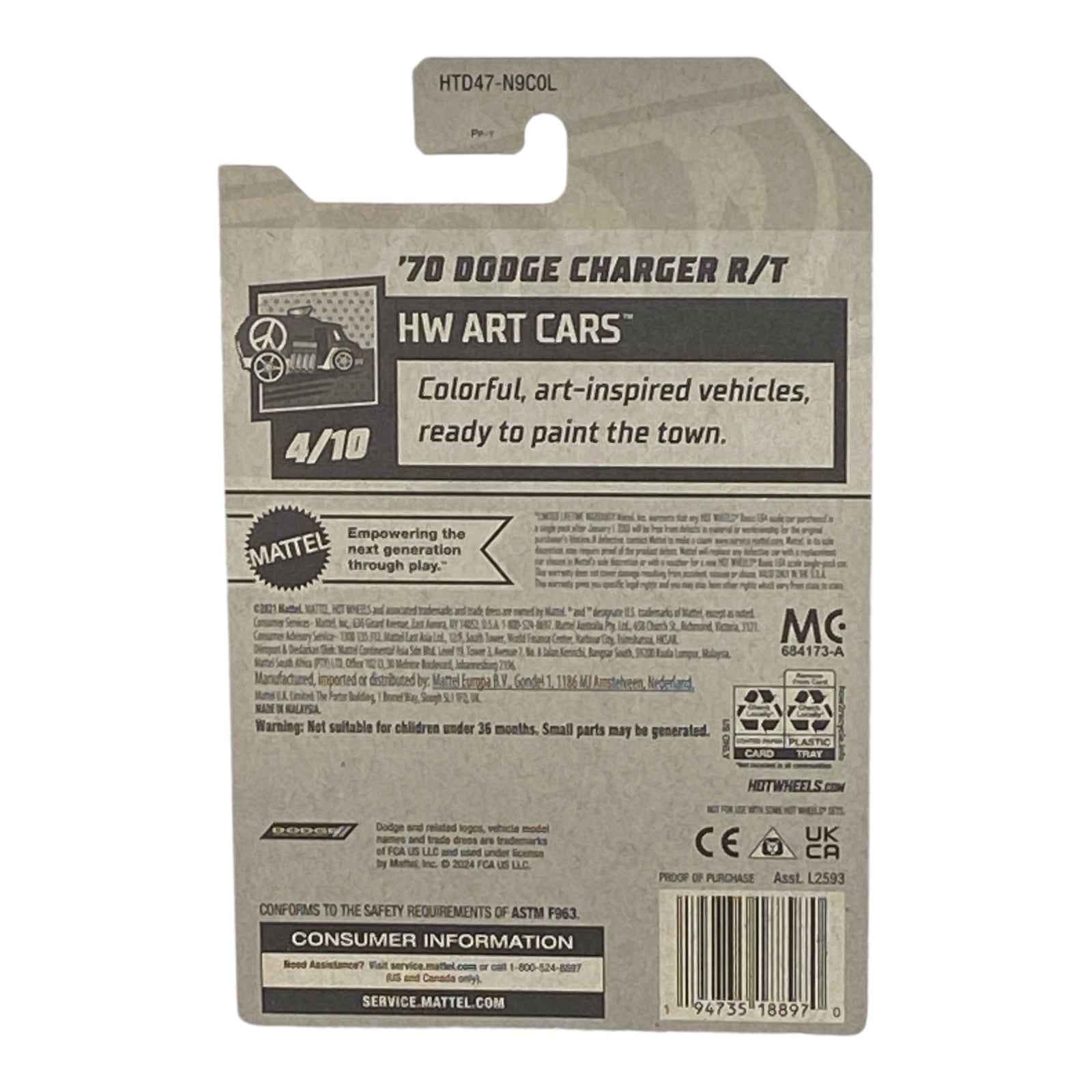 Hot Wheels '70 Dodge Charger R/T is a true representation of classic American muscle. This stunning addition to the Art Cars Series captures the essence of raw power, speed, and style. With its bold design and striking color combination, the '70 Dodge Charger R/T is not just a toy; it's a collector's dream.