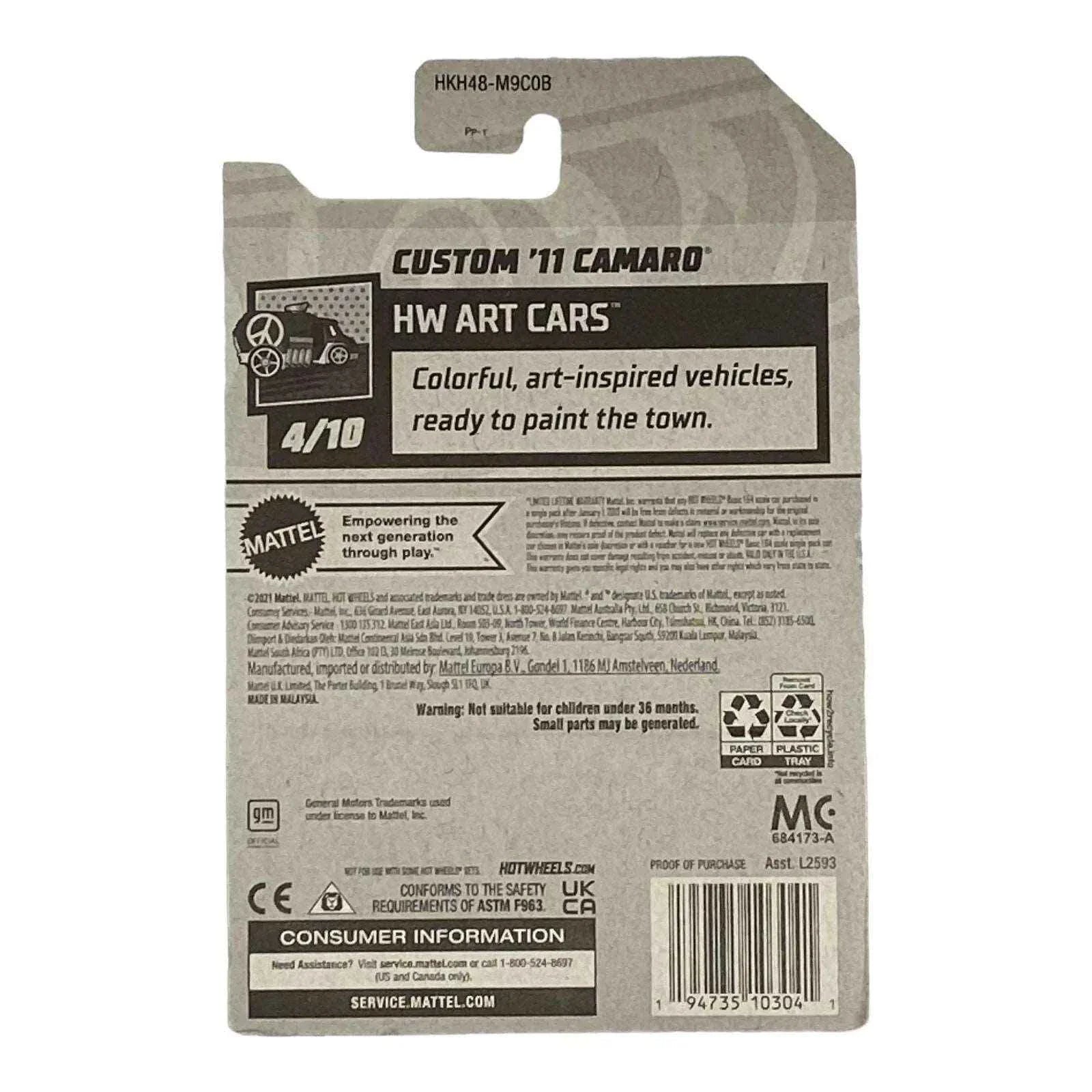 The Art Cars Series is known for its captivating designs, and this particular model exemplifies creativity and artistry with its dynamic graphics. As Hot Wheels continues to push the boundaries of design and quality, collectors can be assured that the Hot Wheels Custom '11 Camaro will remain a cherished item for years to come.