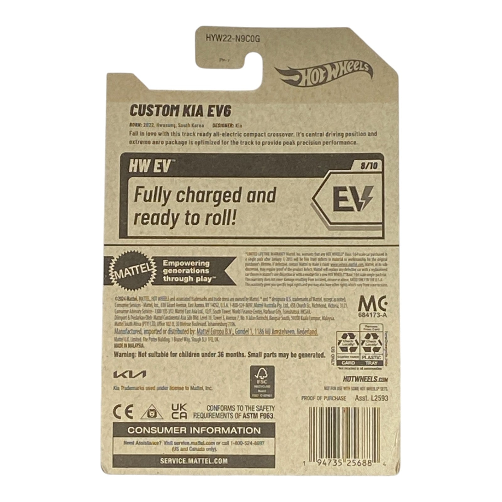 The Hot Wheels Custom Kia EV6 is an exciting addition to the Hot Wheels collection, capturing the essence of the innovative Kia EV6 in a miniature format. As part of the HW EV Series 8/10, this model stands out with its unique design and vibrant colors that reflect the modern aesthetics of the original vehicle. Whether you're a collector or a fan of cutting-edge automotive design, this custom model is sure to impress.
