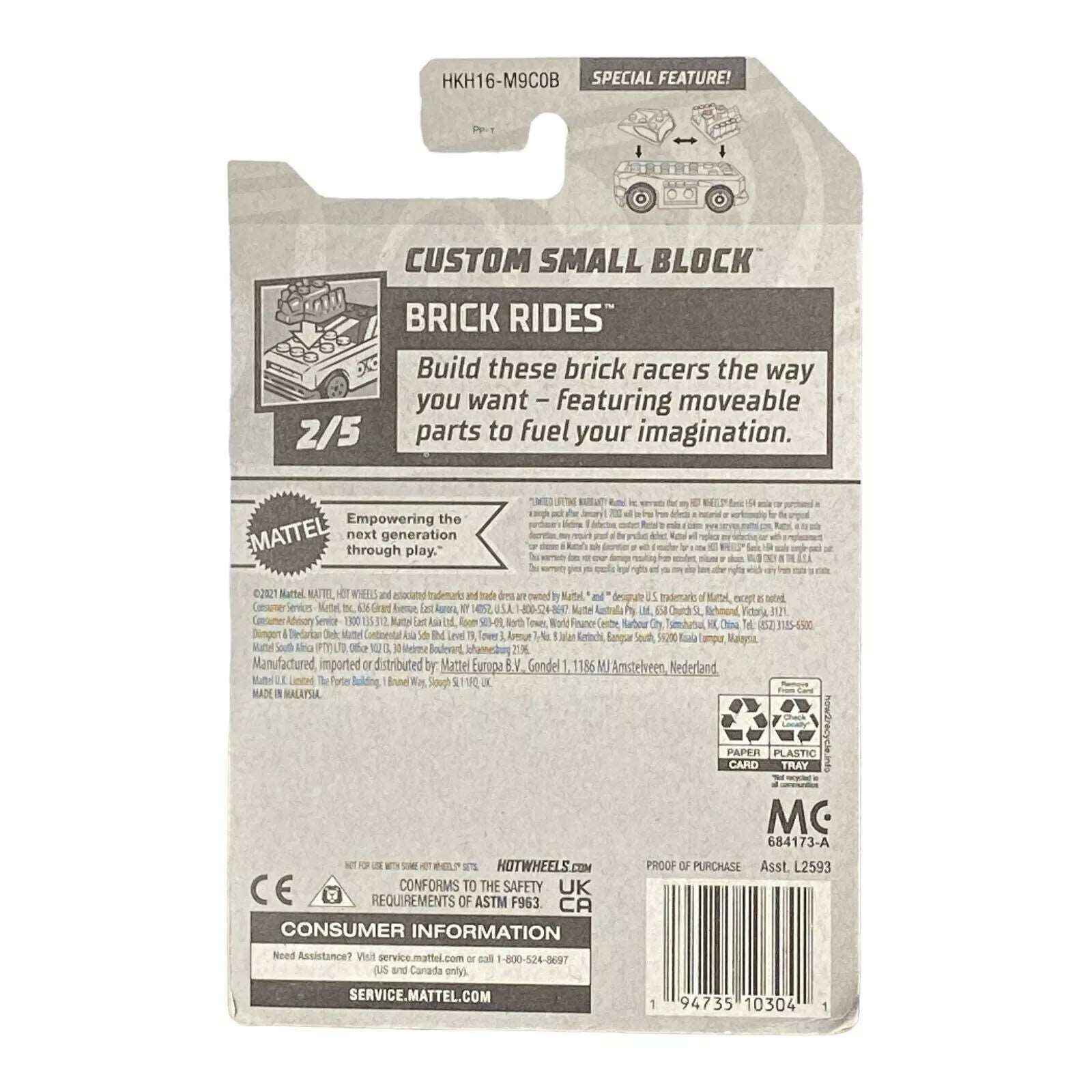 This model is part of the renowned Brick Rides Series 2/5, which showcases unique and innovative designs that appeal to both children and adults. The Hot Wheels Custom Small Block stands out with its custom features and attention to detail. Every aspect of this car has been meticulously crafted, from its sleek body to its intricate decals.
