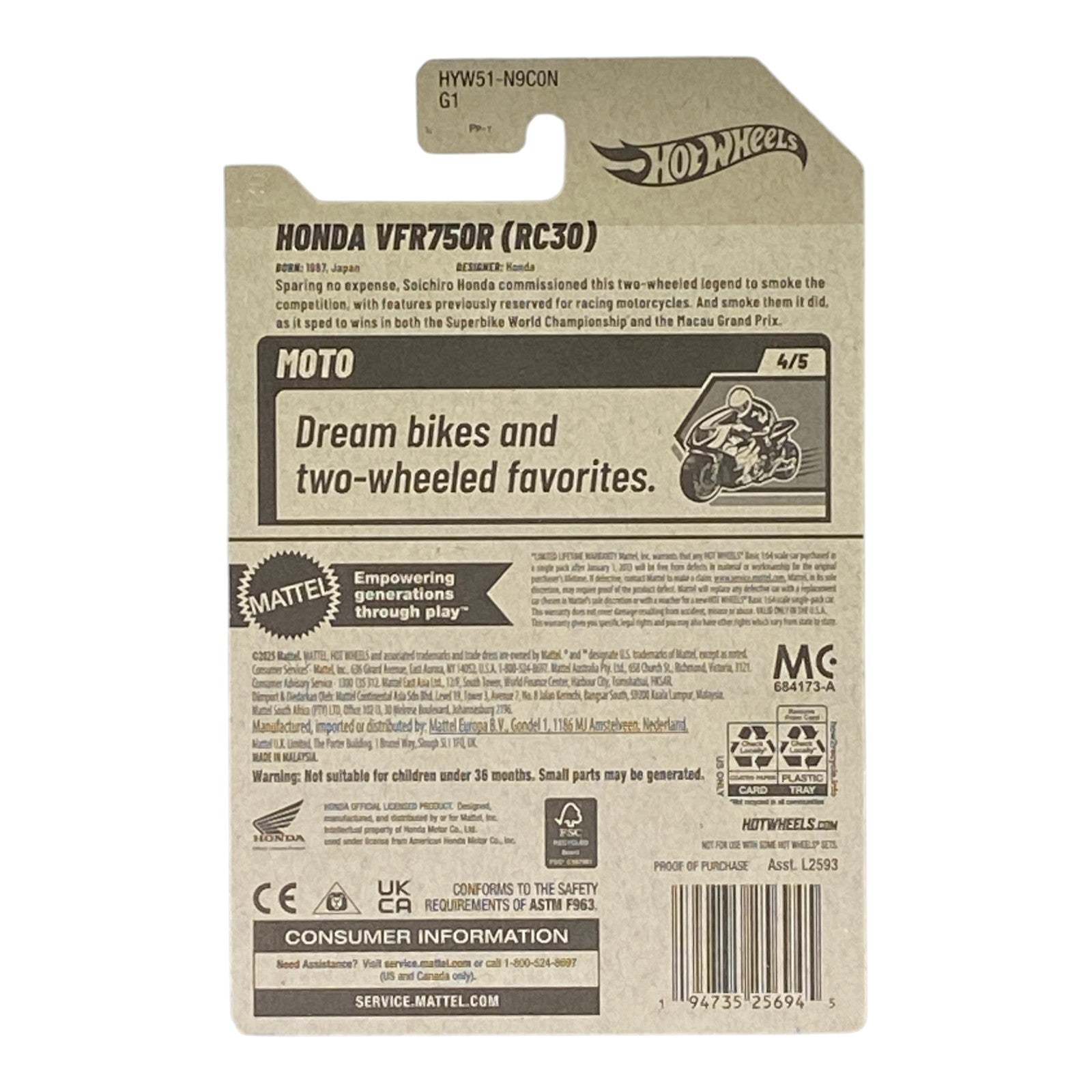 • Collector’s Must-Have: Premium die-cast quality and limited-edition Moto Series packaging make this VFR750R a rare treasure for Hot Wheels enthusiasts.