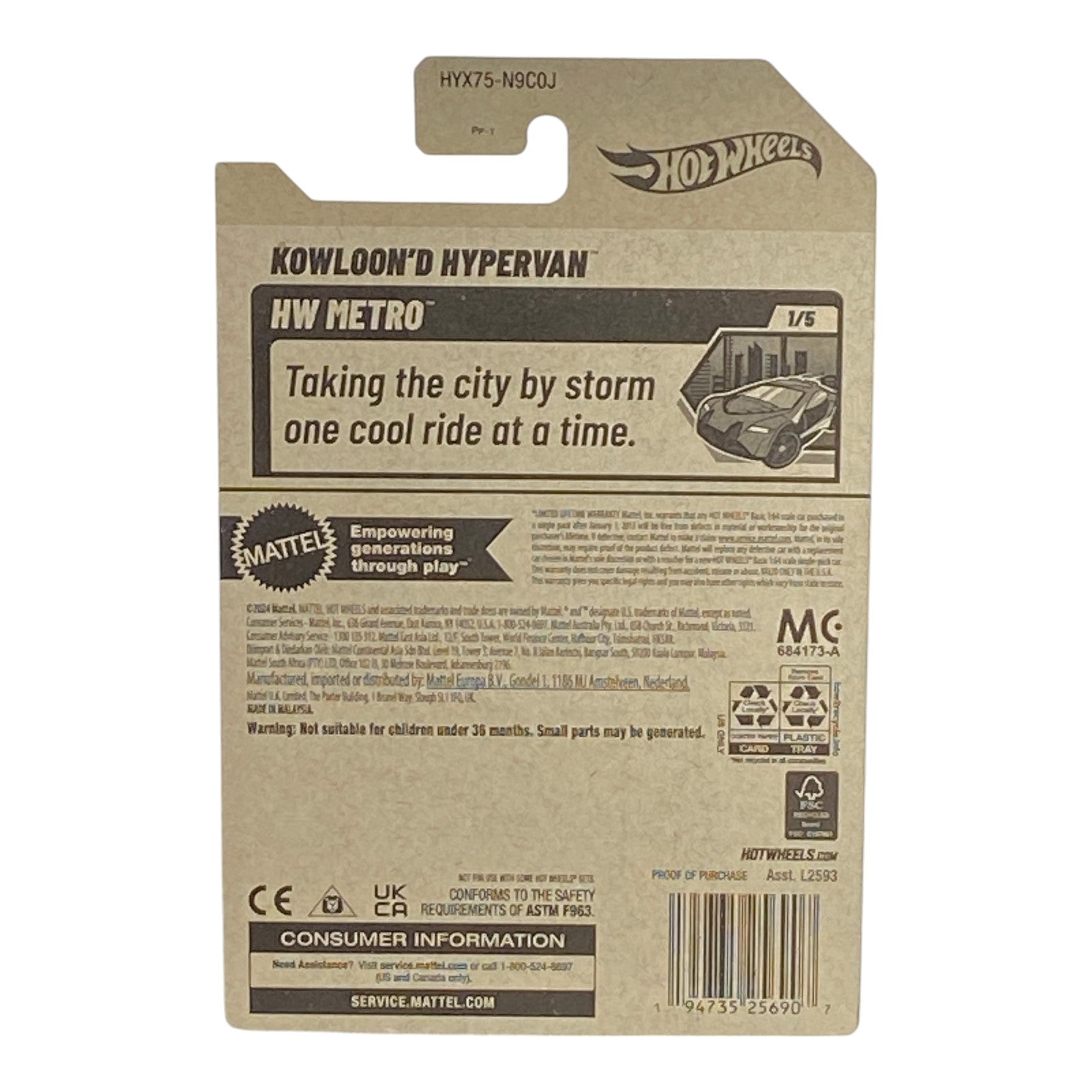 As part of the Metro Series 1/5, this model complements other urban-themed Hot Wheels vehicles. Collectors often seek to complete series collections, and the Kowloon'd Hypervan is a must-have as it adds uniqueness to each display. Its limited release also means that it has the potential to appreciate over time, making it not just a toy but an investment for collectors. Owning this hypervan means owning a piece of Hot Wheels history.