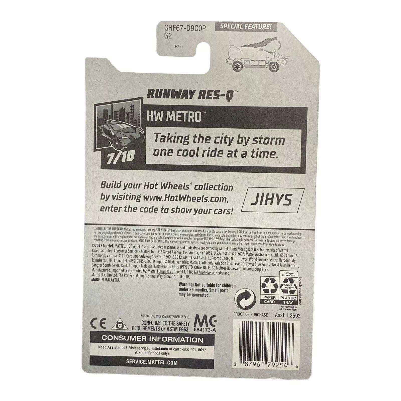 - Collectible Value: As part of the Metro Series, the Runway Res-Q is highly sought after by collectors, making it a valuable addition to any Hot Wheels collection.