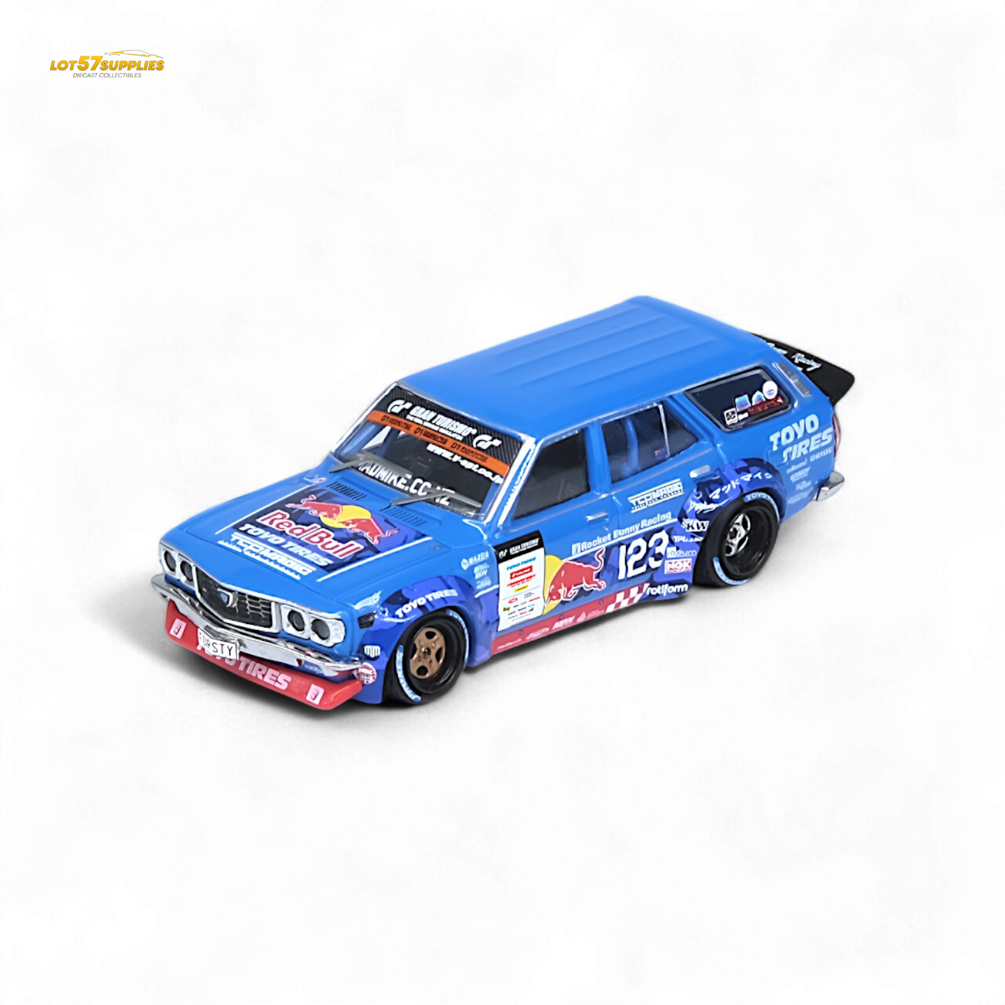 The legend returns in wagon form. This 1976 Mazda RX-3 Station Wagon is no sleeper — it’s the D1GP-spec beast piloted by Mad Mike Whiddett, recreated in ultra-detailed 1:64 scale by INNO64. From the wild livery to the aggressive stance, this casting screams JDM drift royalty.