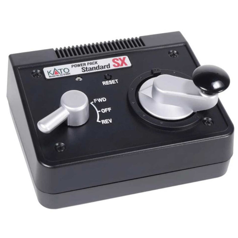 The Kato Standard SX Power Pack is designed to keep your HO and N Scale standard DC trains running smoothly. Revised in 2024, this power pack is 100% compatible with all Unitrack electrical accessories and is an in-kind replacement for previous Kato power packs. It is also upgradeable with alternative AC adapters that will allow greater output for larger layouts (sold separately). The Standard SX includes the controller with speed knob and reverser lever and also matches the pack supplied with M1 and M2 Master Series Oval Sets (sold separately).