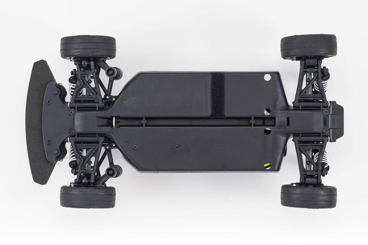 For the pure enjoyment of R/C car driving, the combination of a beautifully reproduced car body with the FAZER series chassis can't be beaten. Kyosho has taken its standard touring car chassis and given it a full model makeover that has evolved performance to a new level. A simplified design with fewer parts has improved maintenance efficiency and reduced weight while core strength and rigidity has been increased through new materials and ribbing and stiffeners on front and rear. In addition, the symmetrical chassis design synergizes excellent front-rear balance through the suspension with responsive control, irrespective of power source. Featuring front & rear gear differentials, oil shocks and full ball bearing specs, the high durability and impact resistance allows drivers to unleash the full potential of the chassis. Brake disc wheel hubs with two different offsets (0mm, +5mm) provide compatibility with 190mm and 200mm width body styles and allows the wheelbase to be adjusted to 274mm by replacing some parts (sold separately) for compatibility with other 1/10 scale body styles, in addition to the body included. The Readyset package comes fully assembled and includes everything except charger and battery for the chassis, and batteries for the transmitter.