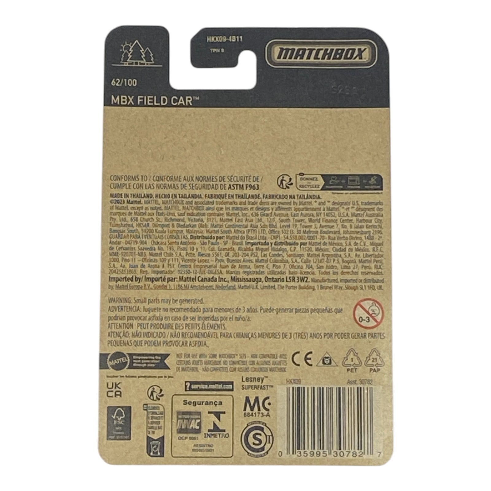 Celebrate Matchbox's legacy with the stunning Matchbox MBX Field Car from the Matchbox 70 Years Series (#62/100). This limited-edition 1:64 scale diecast model features a sleek silver body with vibrant orange accents and special "70 Years" anniversary deco, honoring seven decades of iconic toy vehicles.
