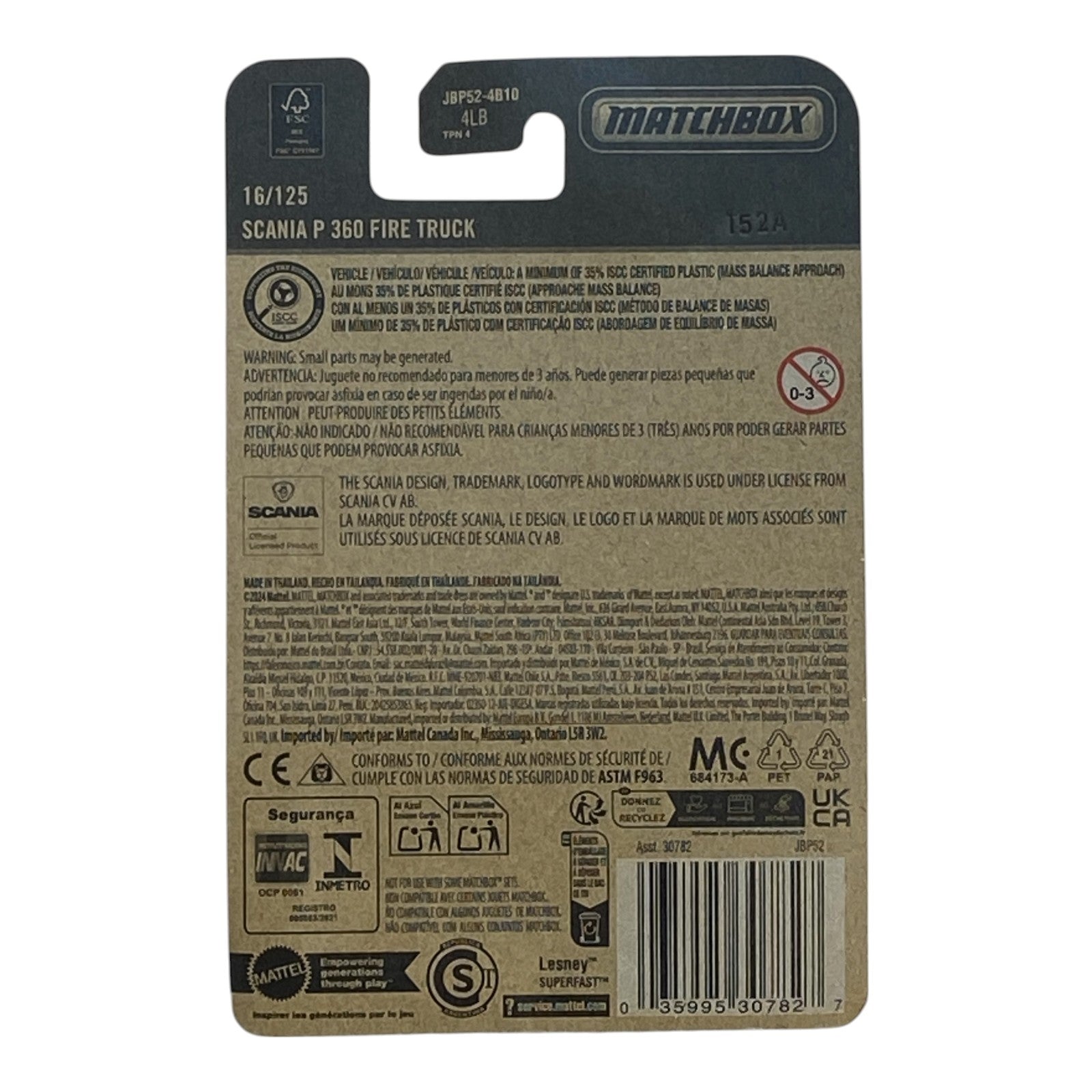 The Matchbox Scania P 360 Fire Truck is a fantastic addition to any toy vehicle collection, designed to capture the imagination of both young and old enthusiasts. This exceptional model is part of the illustrious 2025 Matchbox Series 16/125, showcasing incredible detail and craftsmanship that Matchbox is known for. With its vibrant colors and realistic features, this fire truck not only serves as a toy but also as a collector's item.