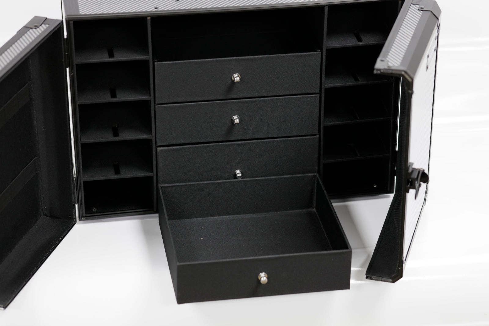 Material: Inside wood and outside Aluminum (carbon fiber print)