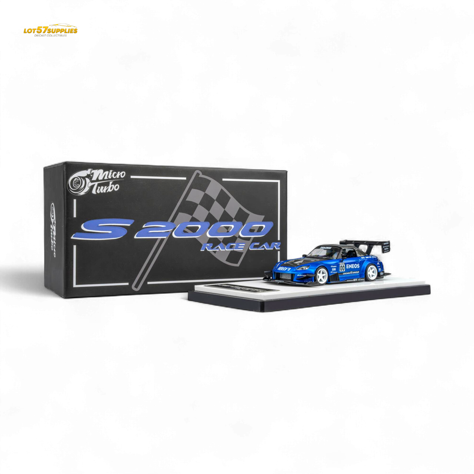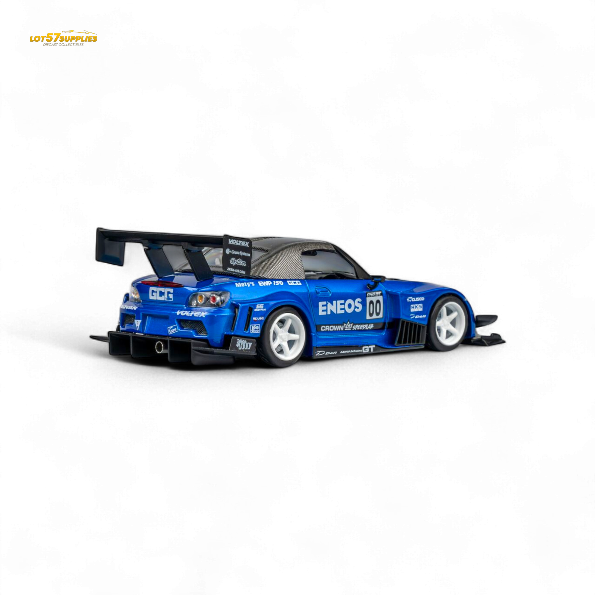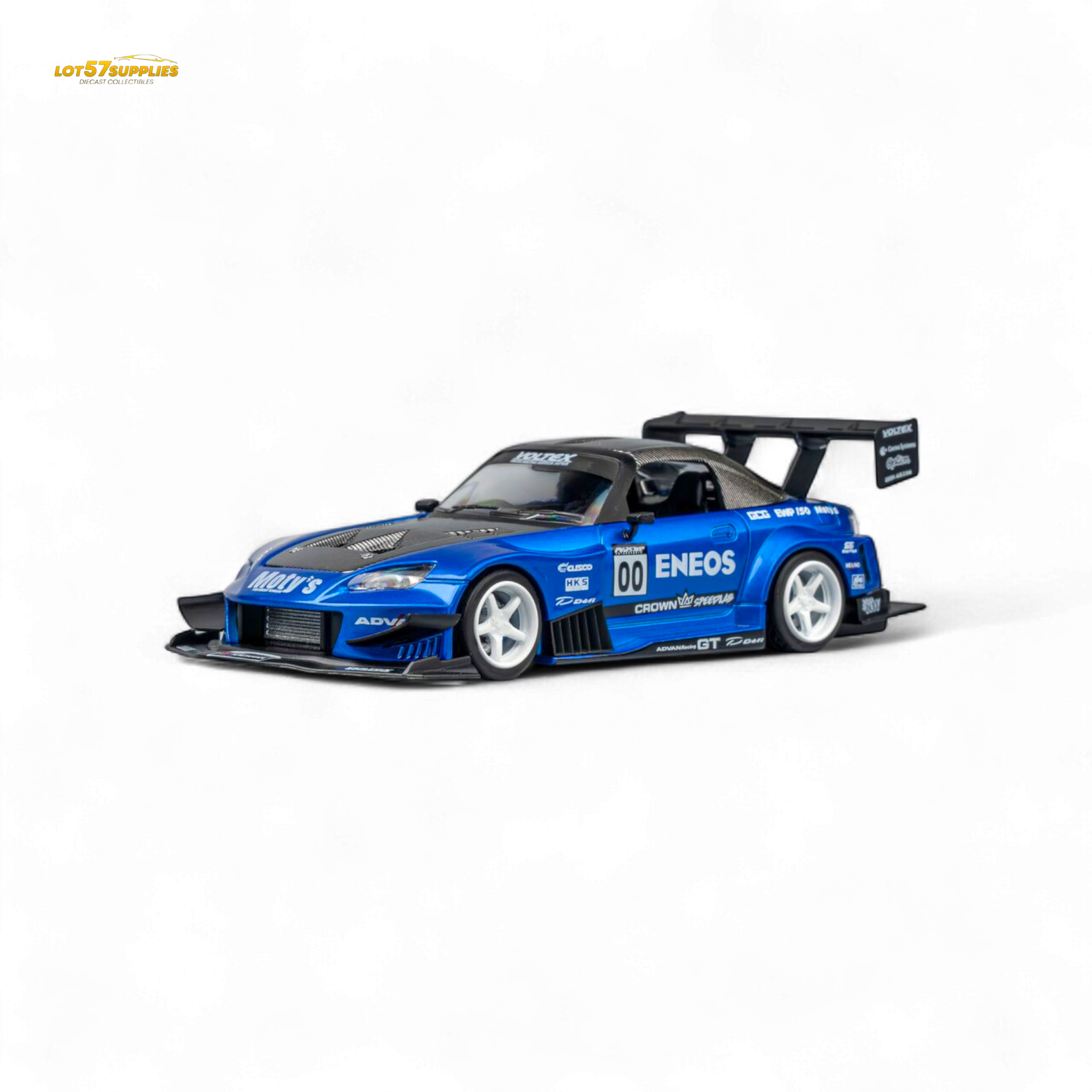 Features: Carbon fiber racing kit & race livery, magnetic interchangeable spoiler, opening/removable hood, detachable exhaust, detailed interior